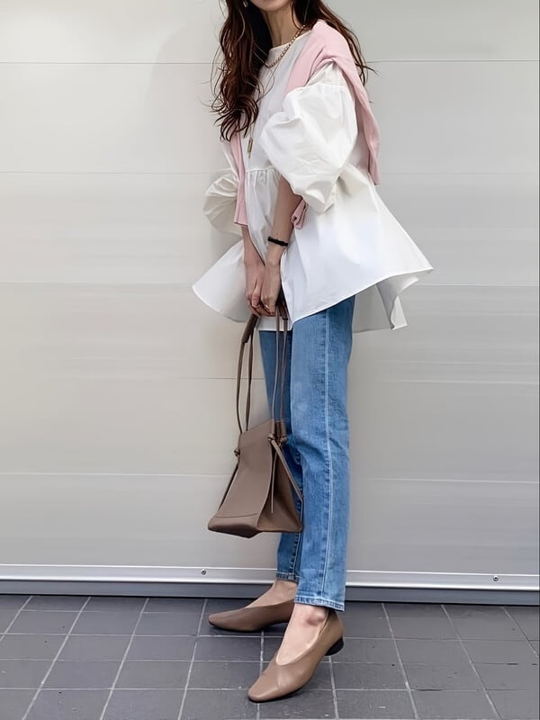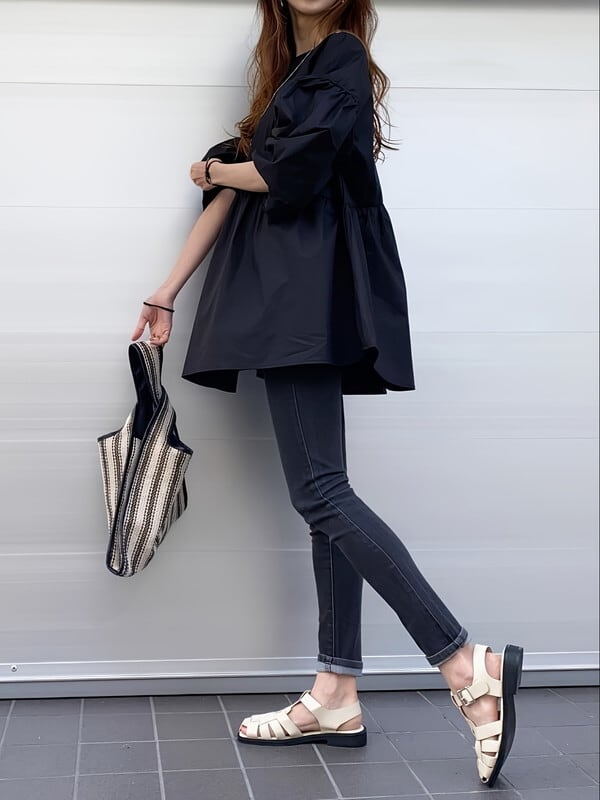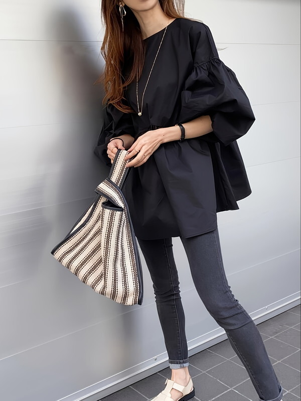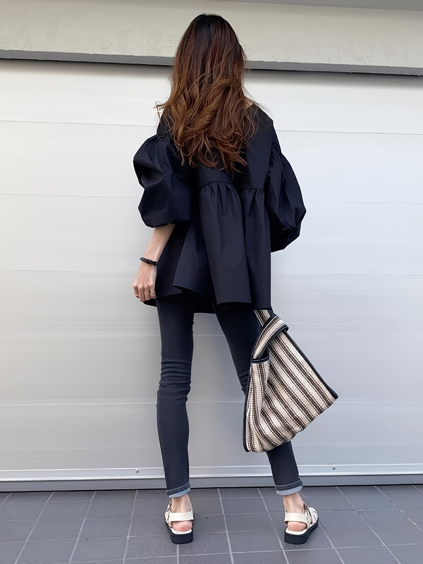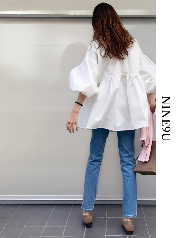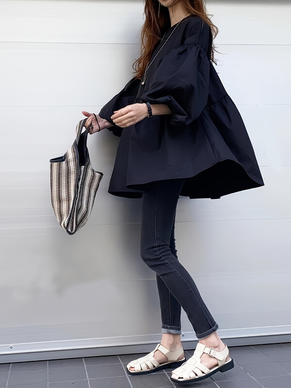 volume-sleeve peplum gather blouse 2color【NINE-T0134】