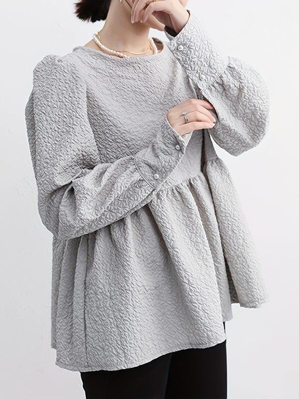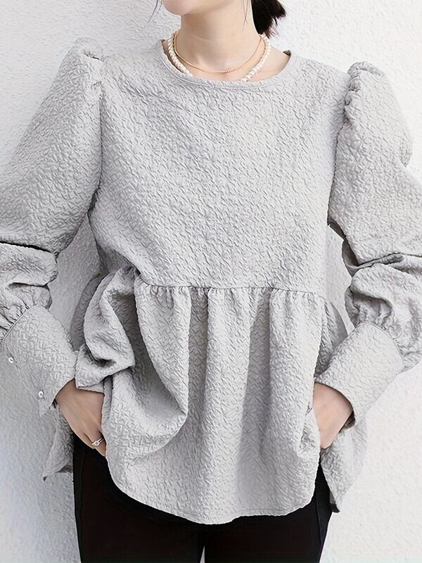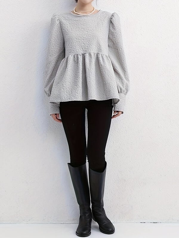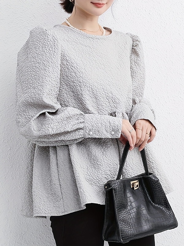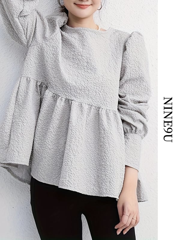 embossed peplum flare blouse【NINE-T0137】
