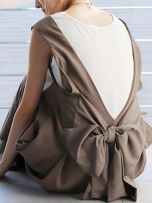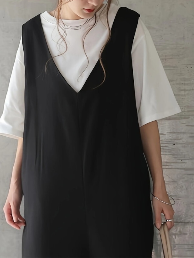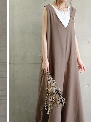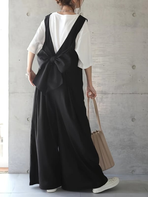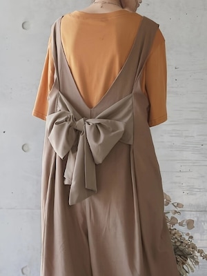 back-ribbon wide-pants v-neck overall 2color【NINE-T0139】