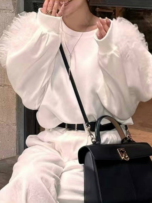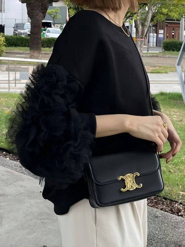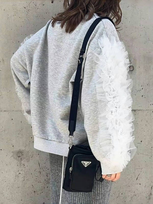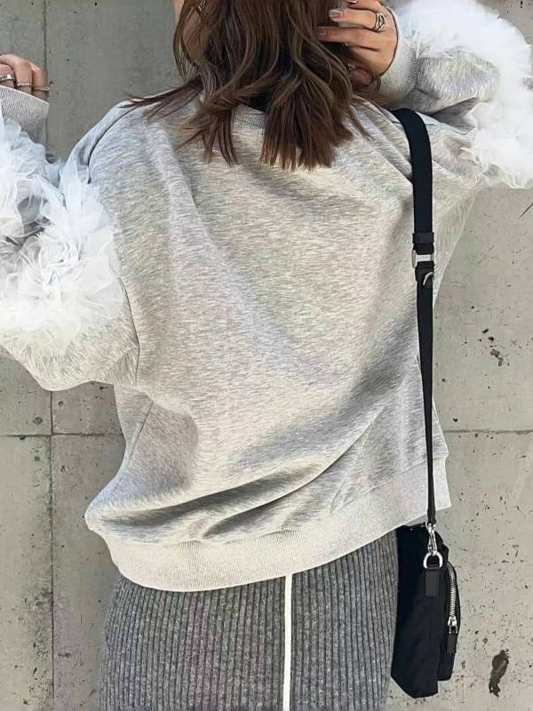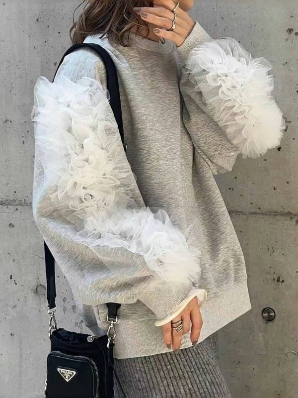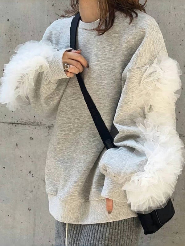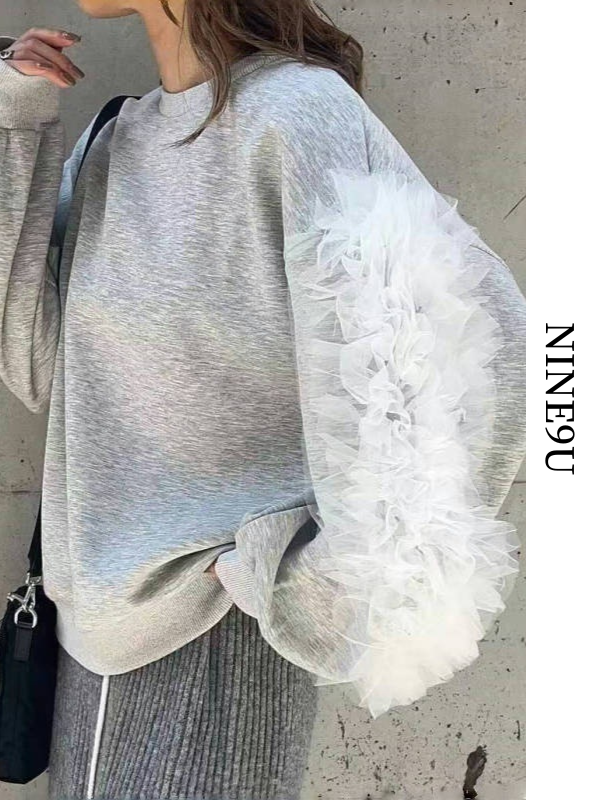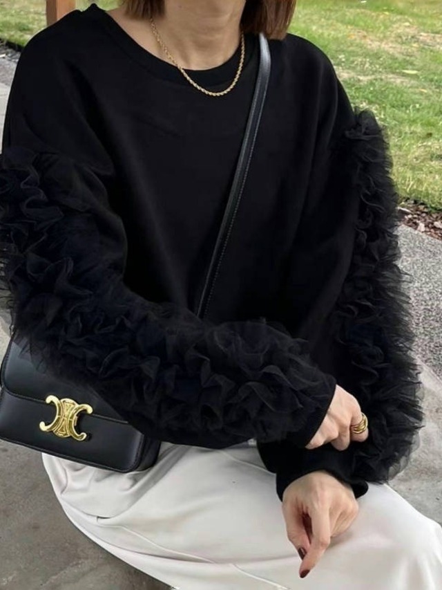 tulle-frill ovresize round-neck pullover 3color【NINE-T0153】