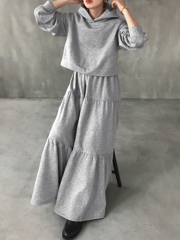 praka&long-skirt sweat relax 2set【NINE-T0158】