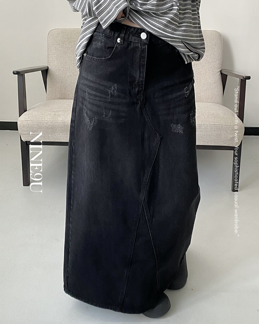 back slit denim long-skirt【NINE0300】