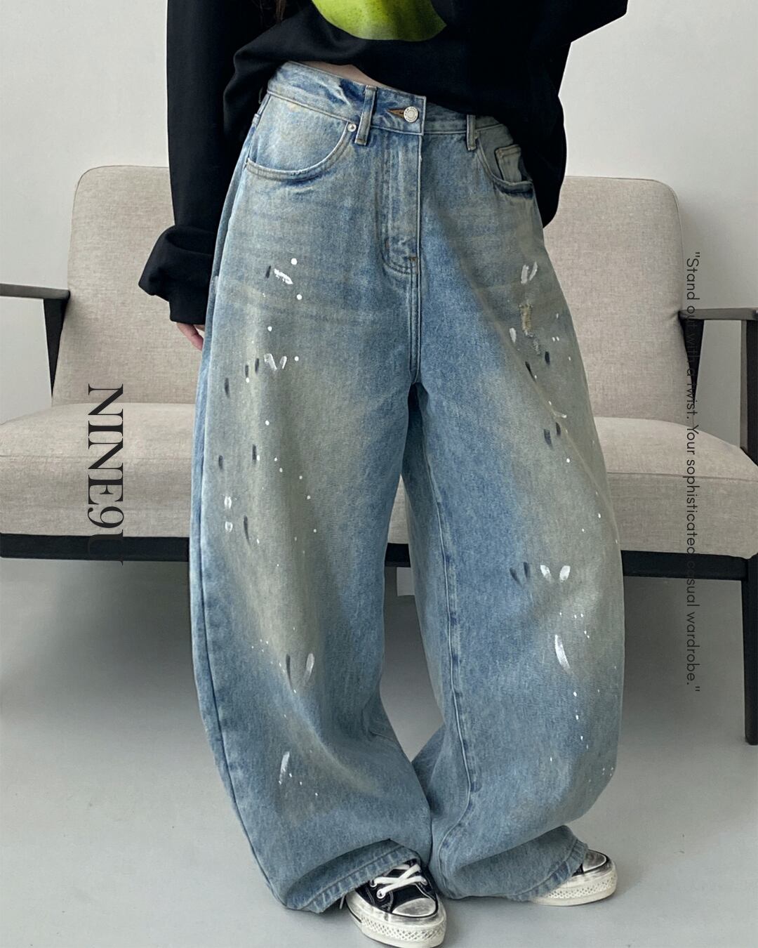 painted vintage-style denim pants【NINE0301】