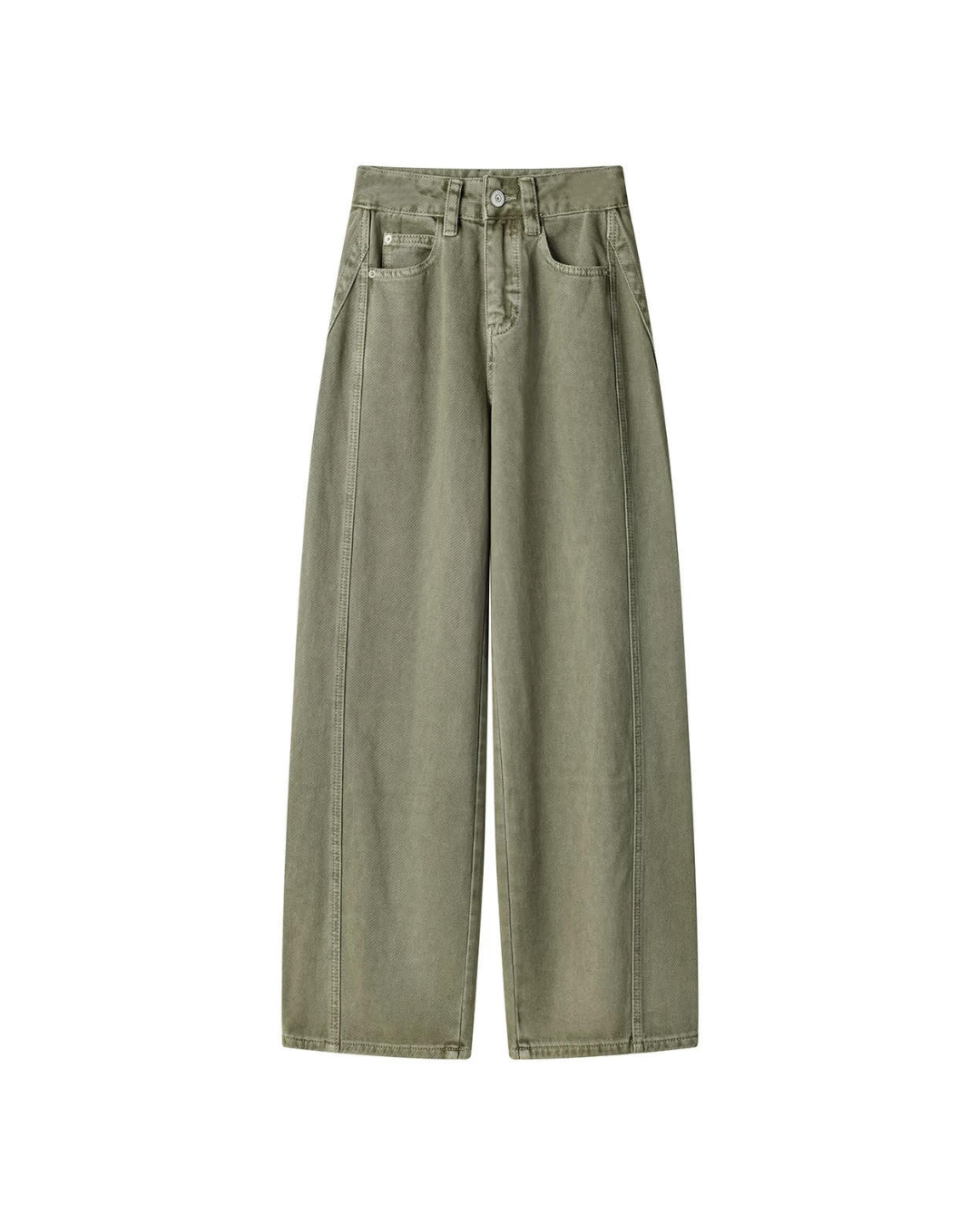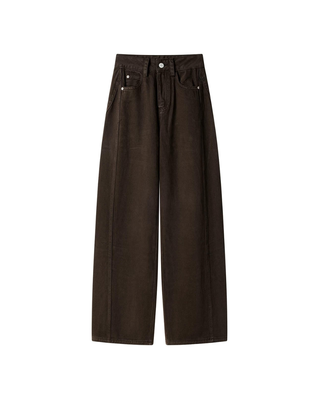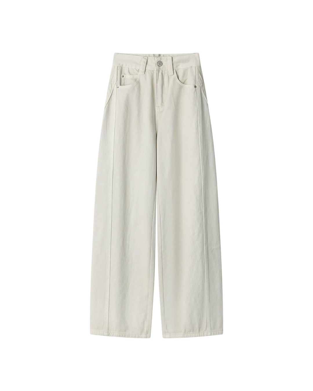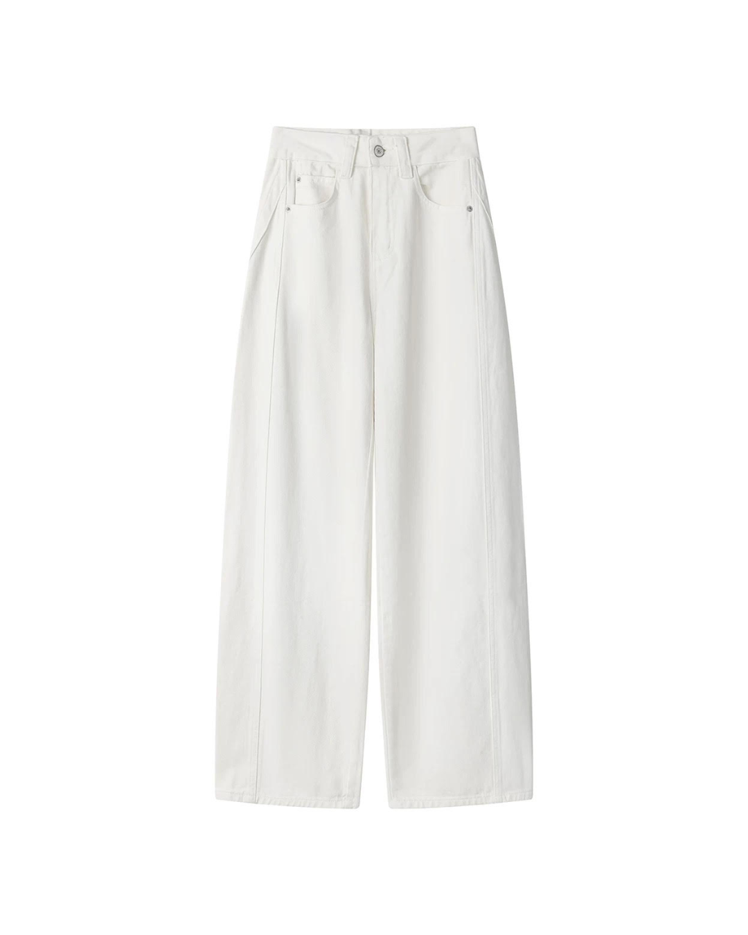 カジュアルなスタイルを手軽に楽しめるハイウエストのワイドデニムパンツです。ゆったりとしたシルエットがリラックス感をもたらし、様々なコーディネートにマッチします。シンプルながらも存在感のあるデザインで、デイリーユースに最適な一着です。