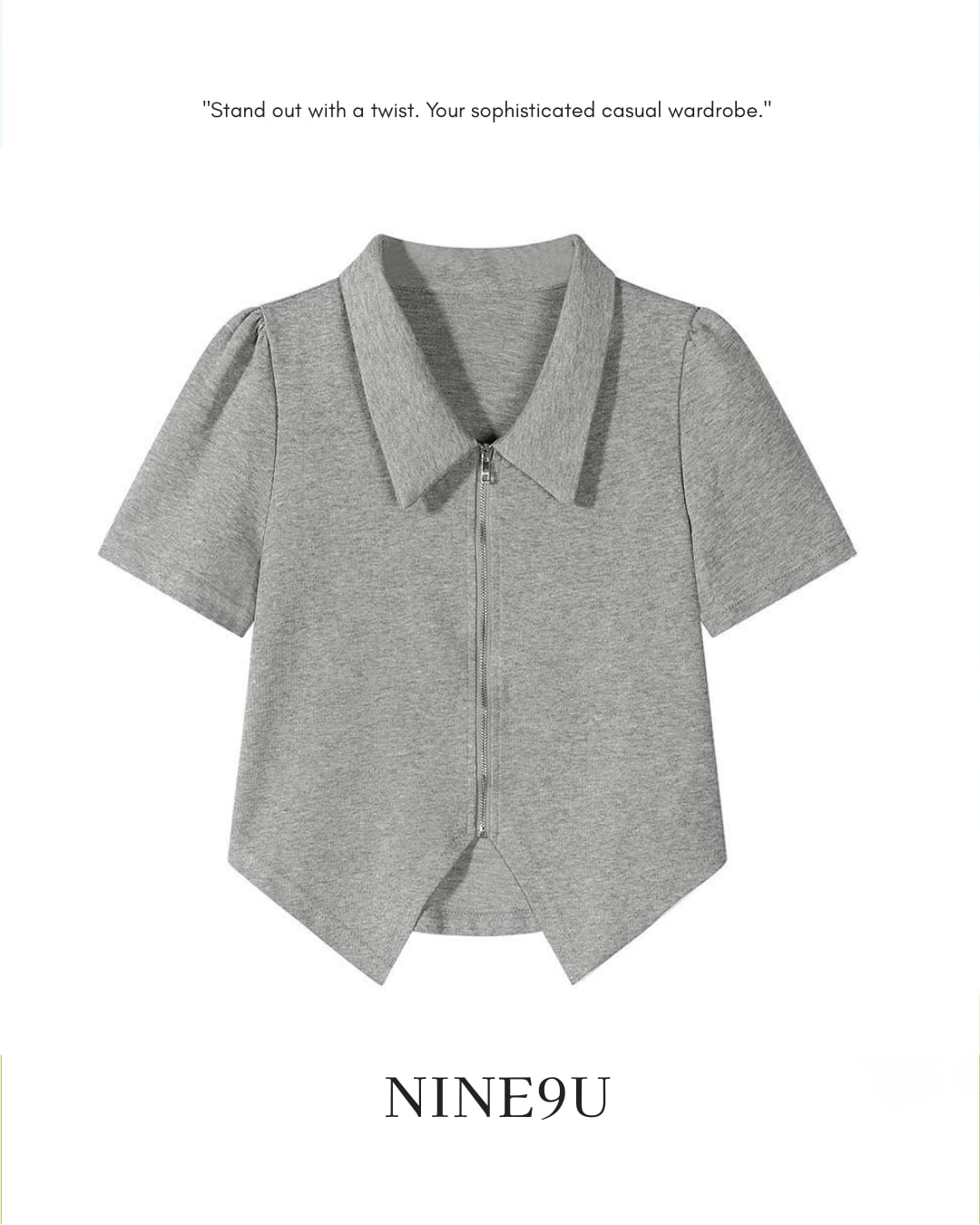 v-neck zipper short-sleeved polo shirt【NINE0240】