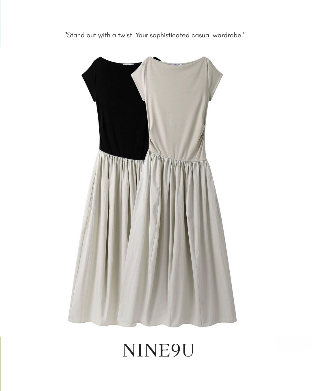 color block slim fit A-Line long one-piece 2color【NINE0252】