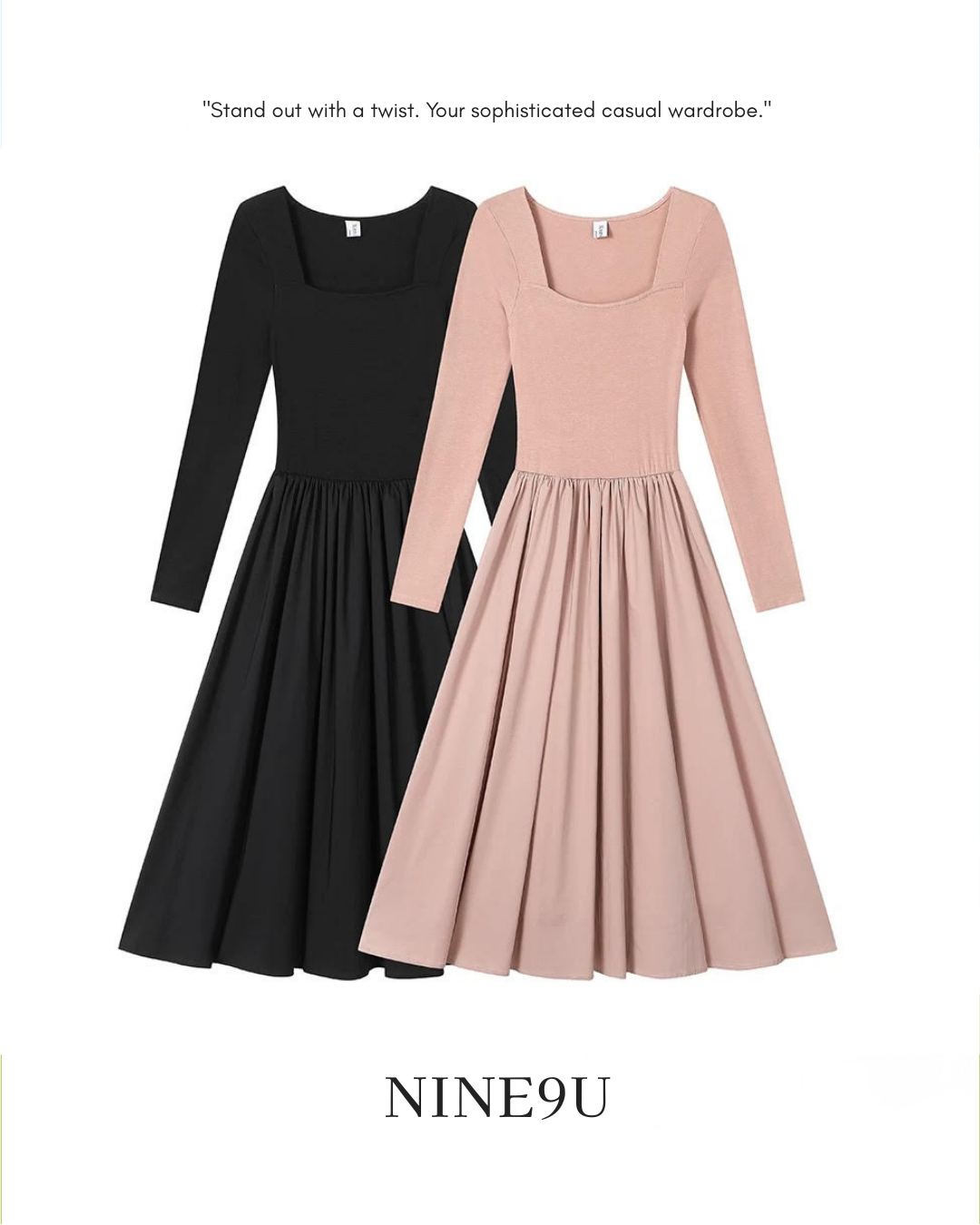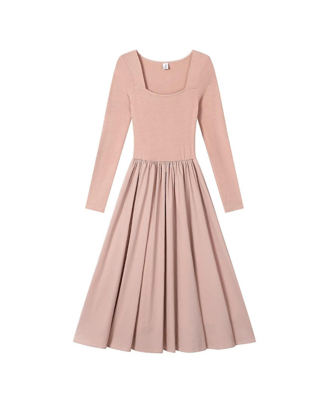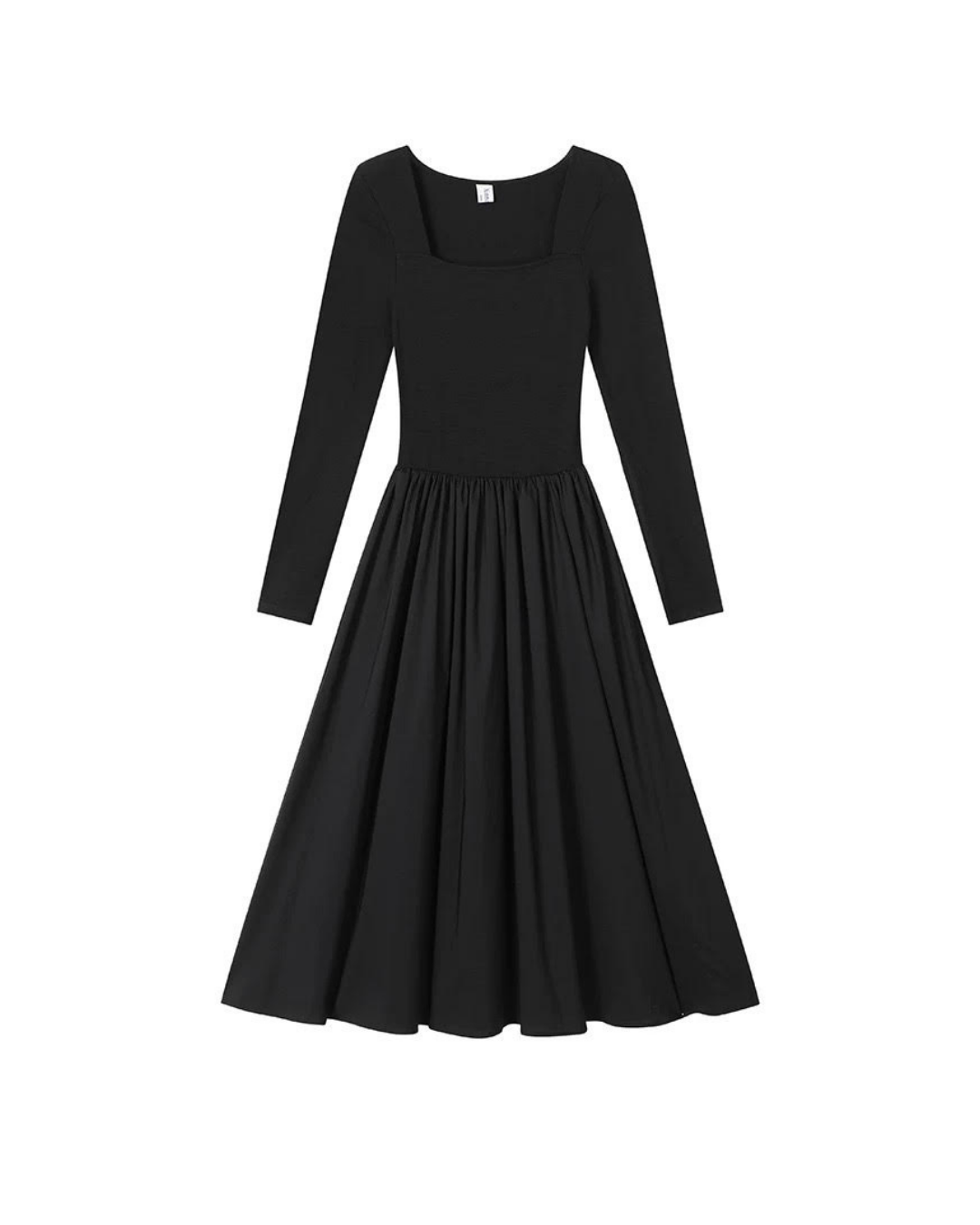 レトロな雰囲気が漂うスクエアネックデザインのAラインロングワンピースです。長袖とスリムなシルエットが上品さを引き立て、普段使いから特別な日まで幅広く活躍するアイテムです。