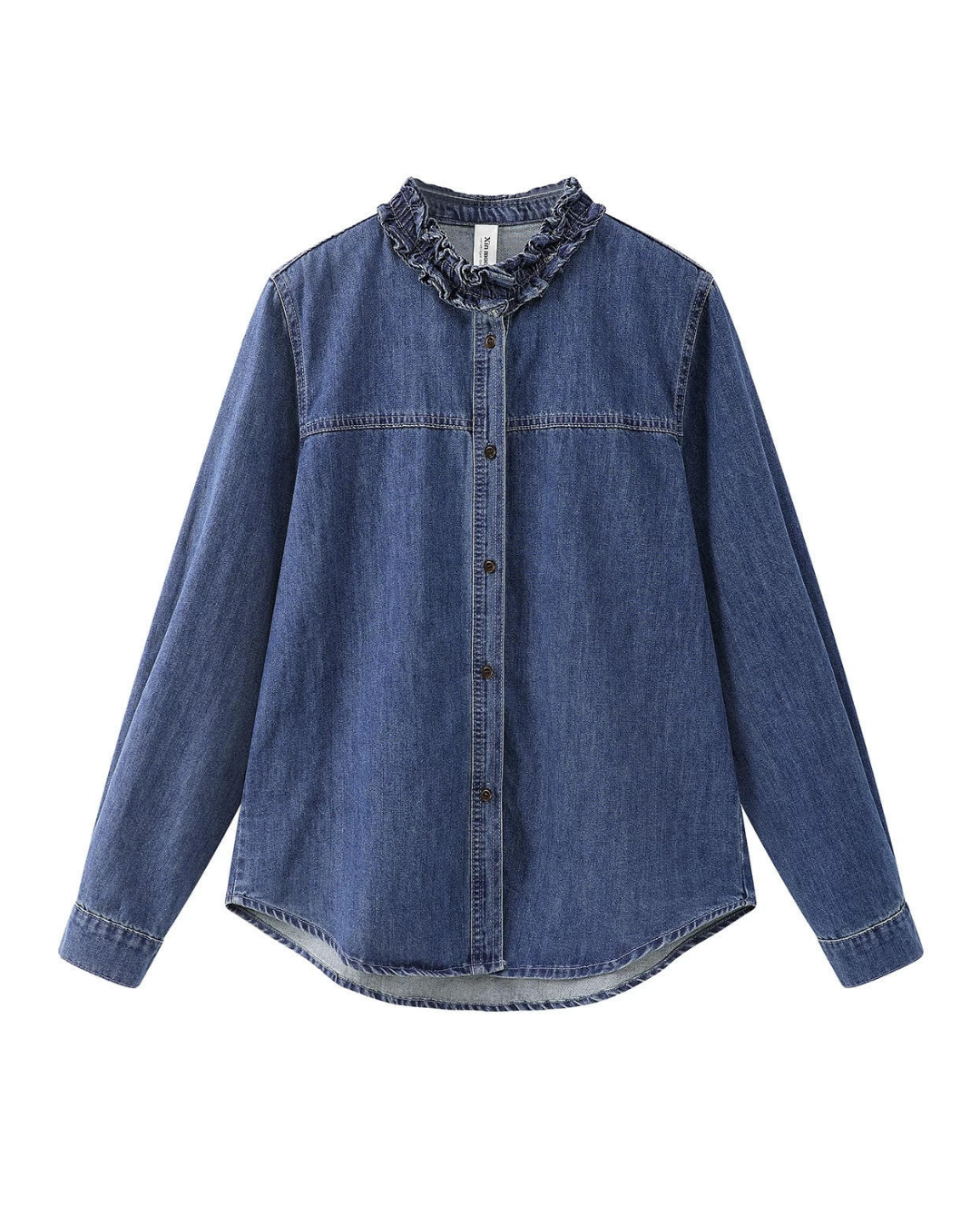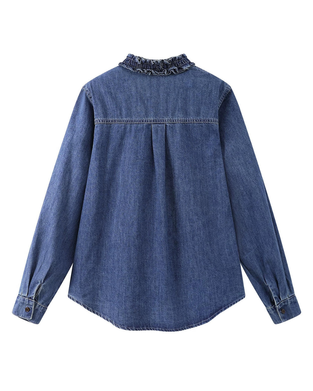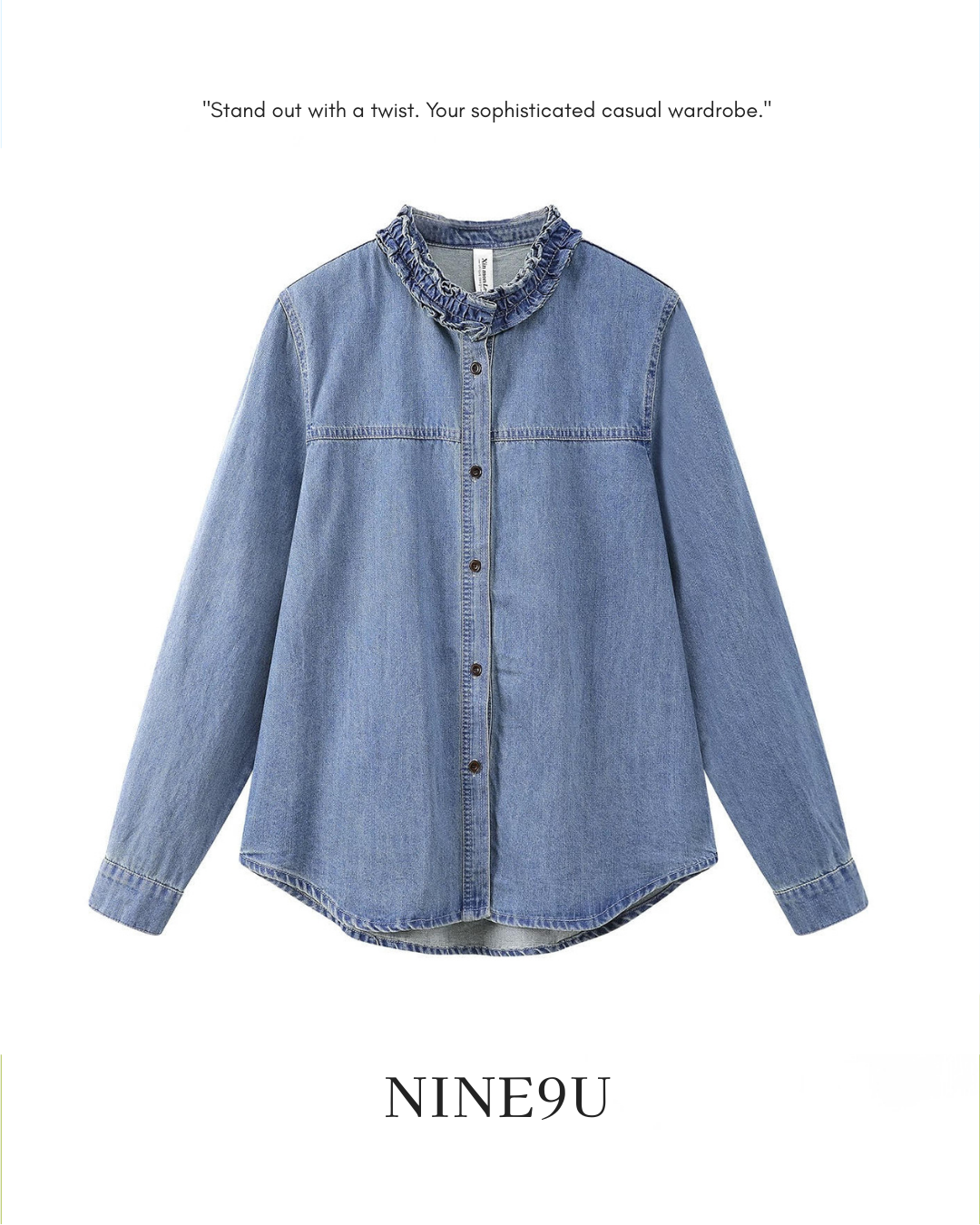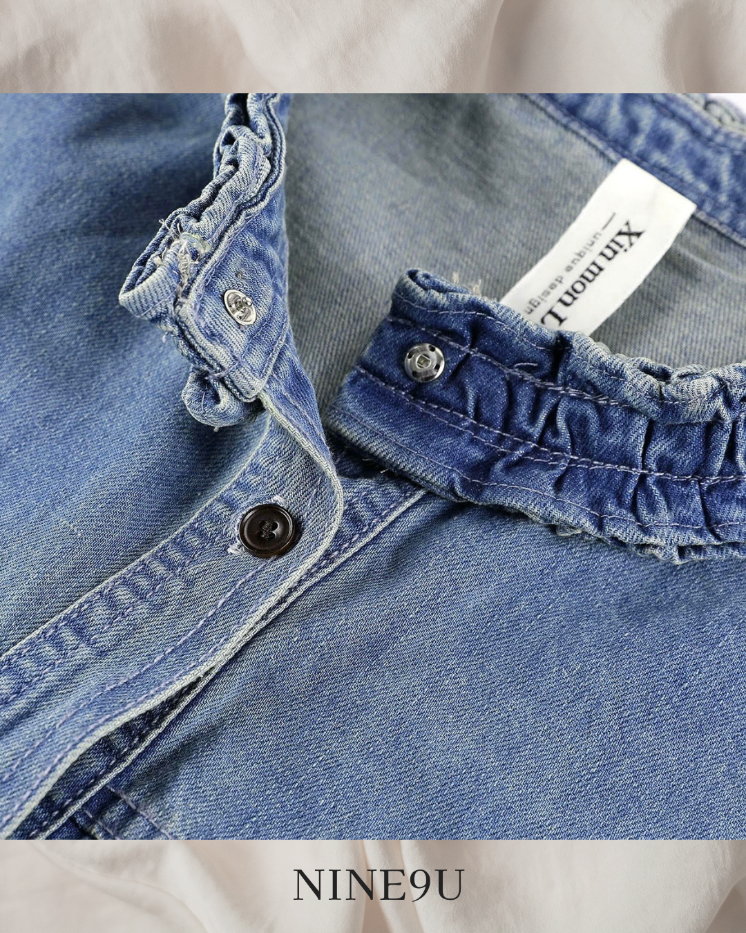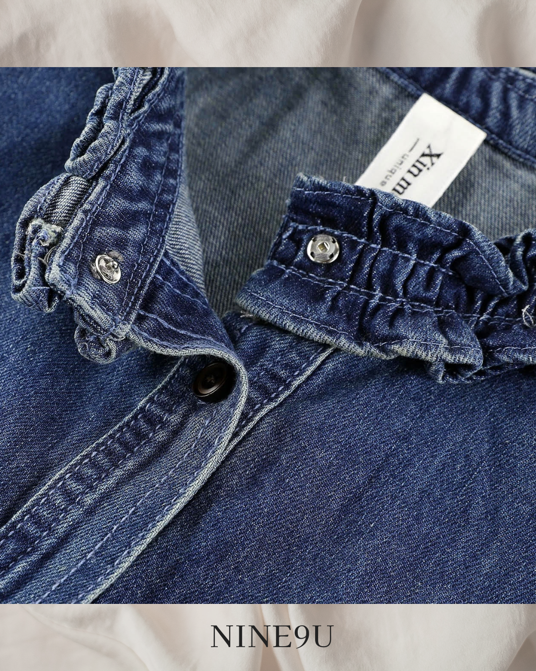 casual ruffle collar retro denim shirt 2color【NINE0258】