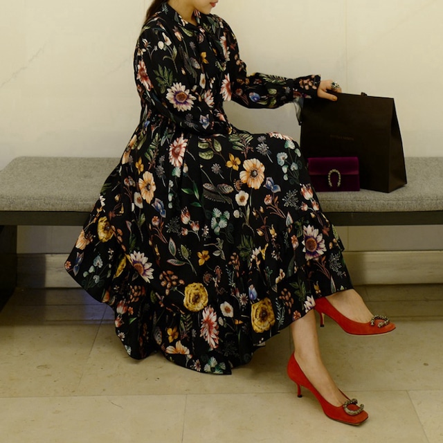 ベースカラーがブラックなのでボリュームある形でも着やせすることでしょう。