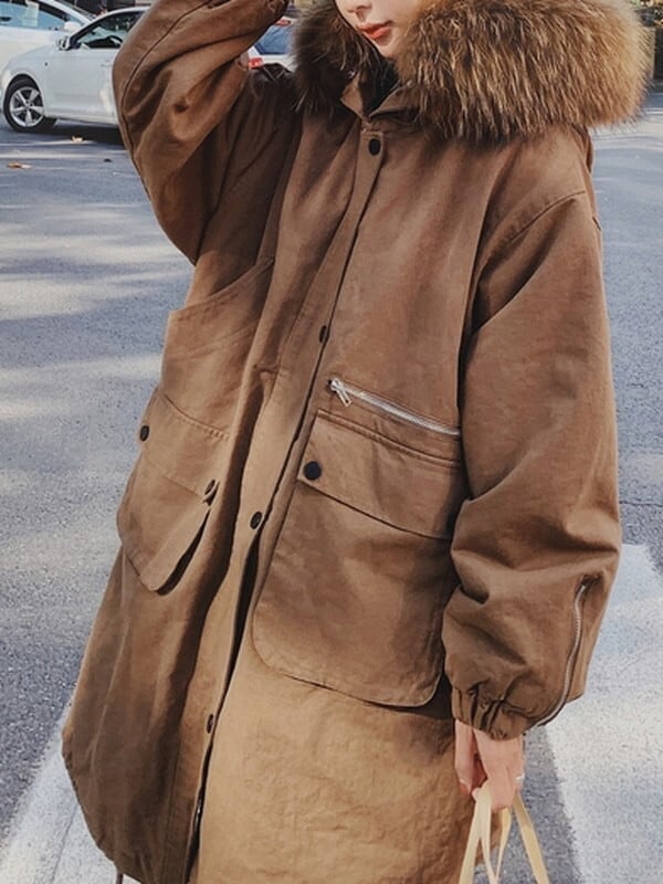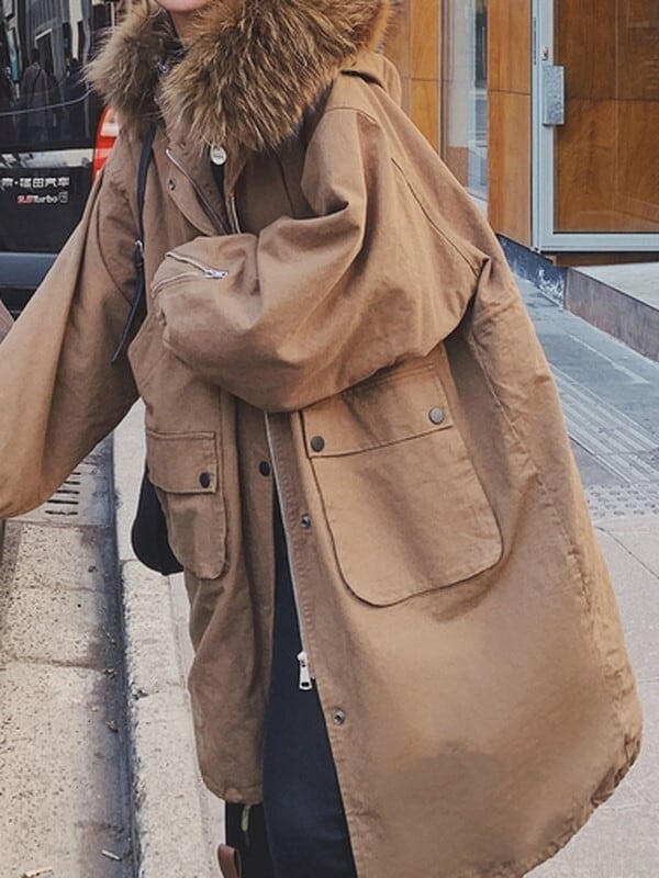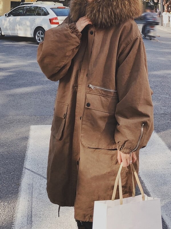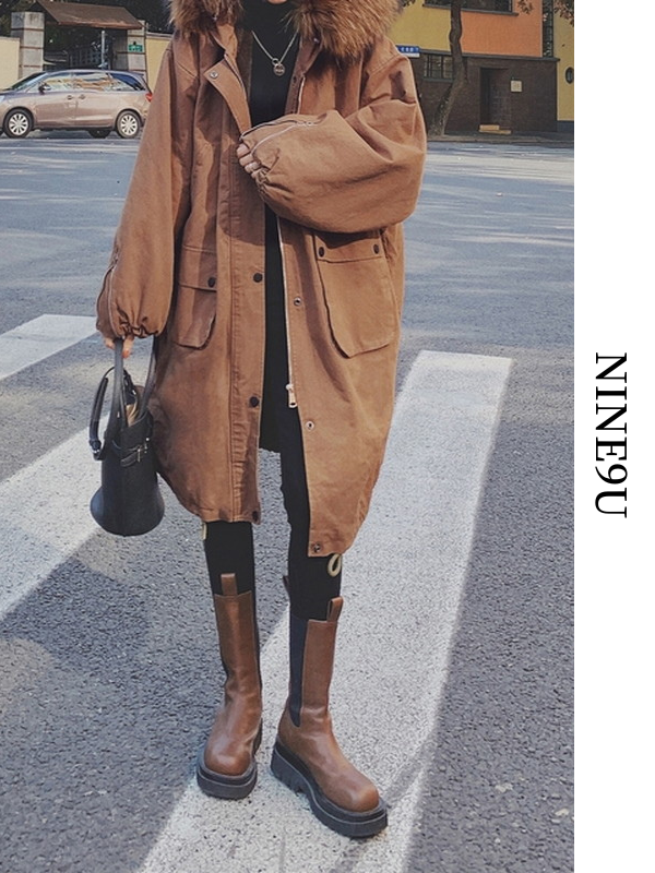 fur-hood oversize boa military-coat 2color【NINE7071】