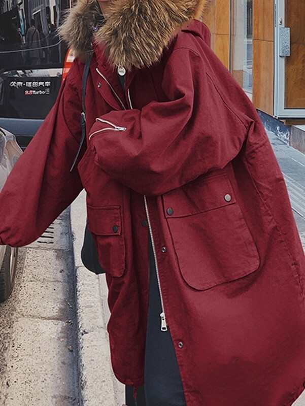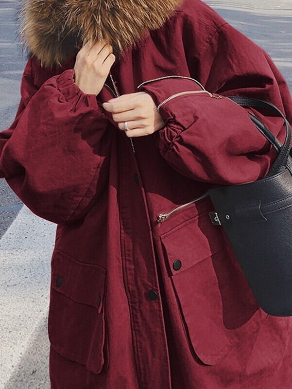 ボリューム感のあるファー付きフードがポイントのコートジャケットです。暖かみのあるBROWNと洗練されたREDの2色展開で、どちらも裏地がついているので寒い日でも暖かく快適におしゃれを楽しめます。