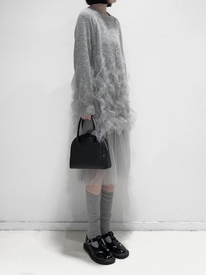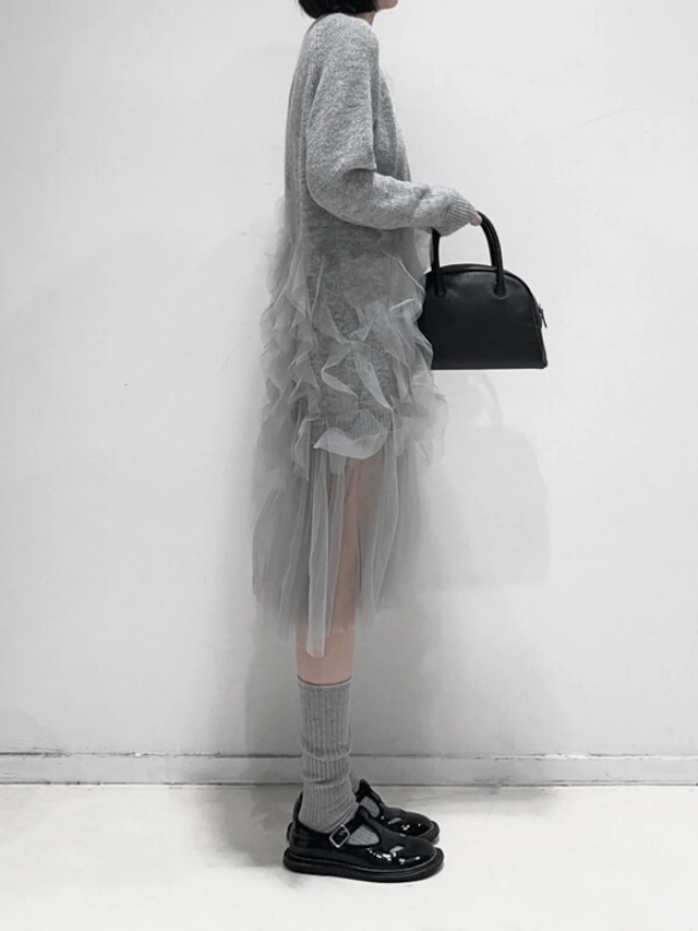 knit&tulle see-through frill one-piece【NINE8393】