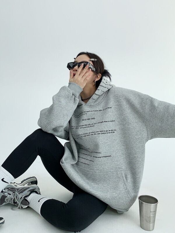 nichi-letter hoodie oversize parka 2color【NINE8495】