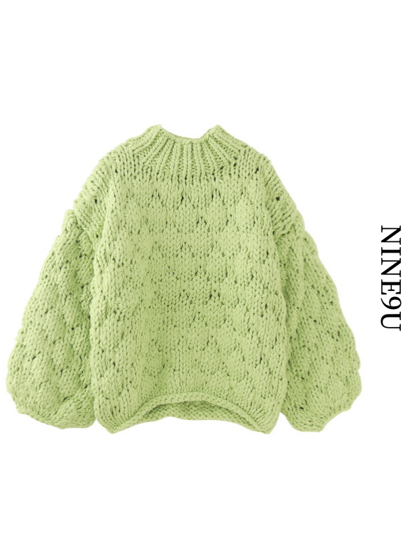 low-gauge balloon-sleeve bottle-neck knit【NINE8642】