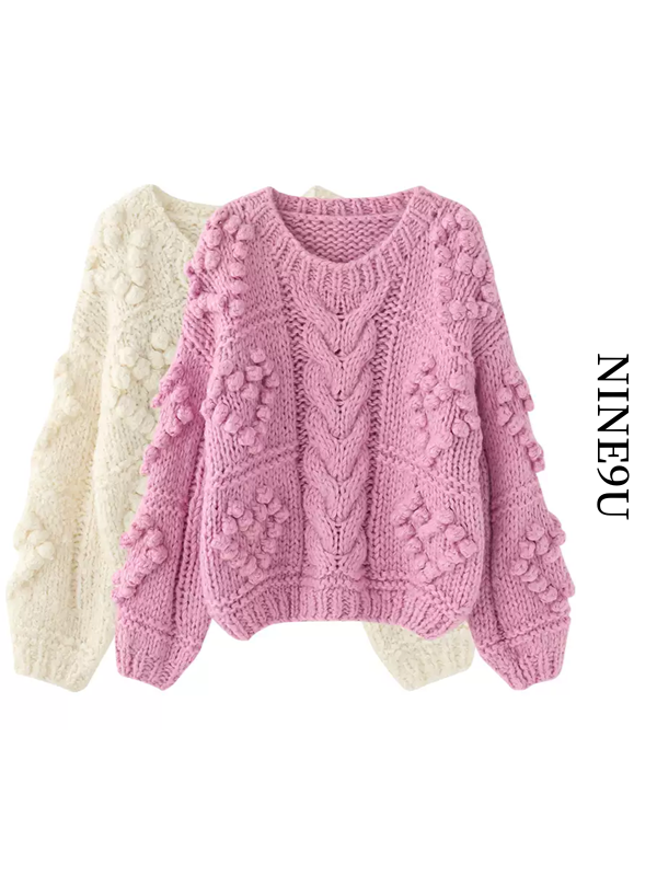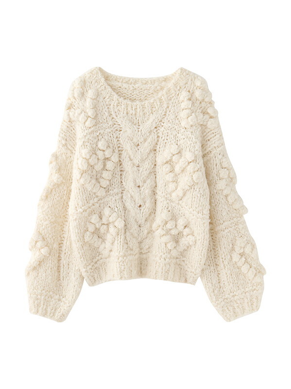 low-gauge heart pon-pon knit 2color【NINE8644】